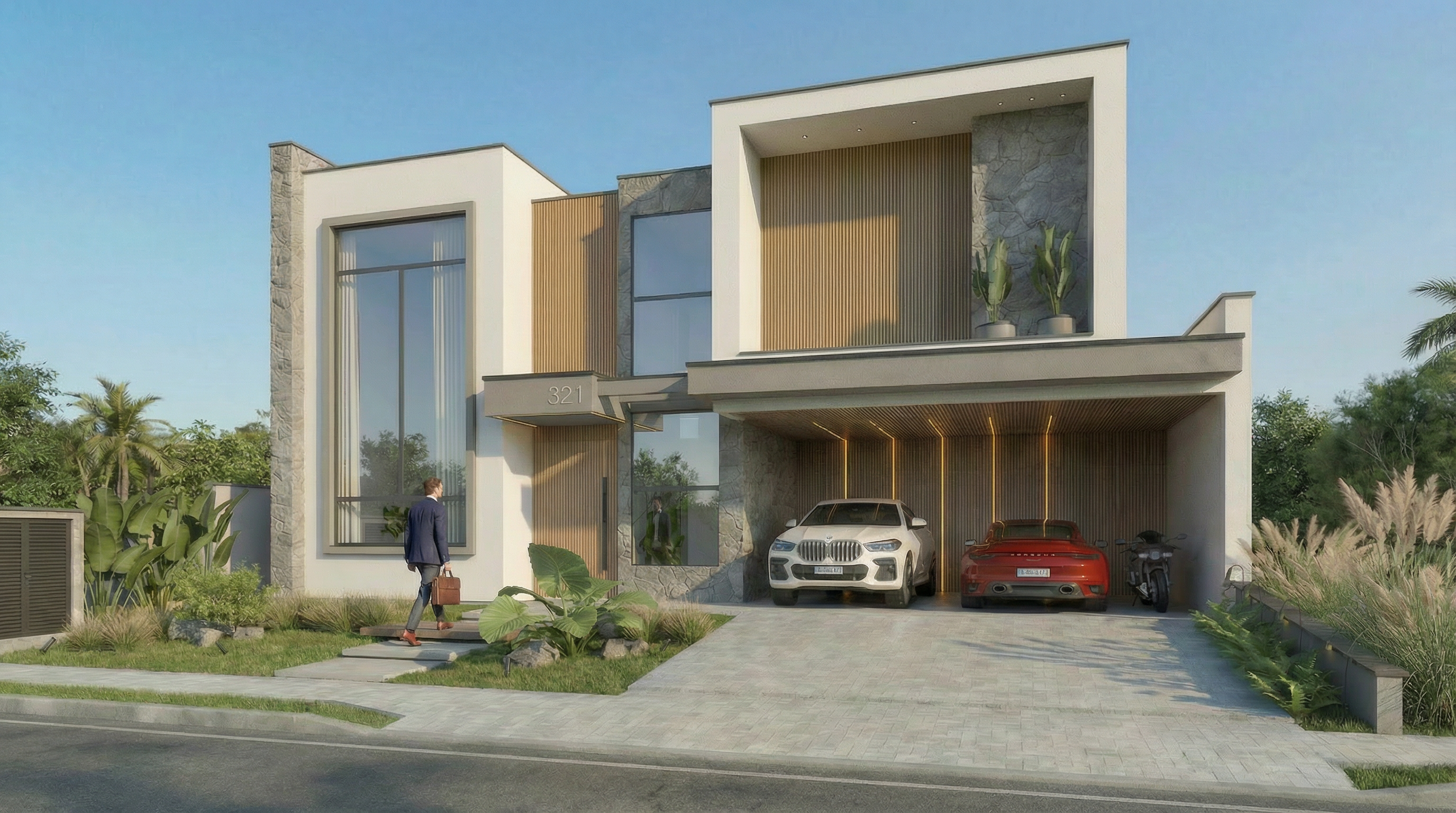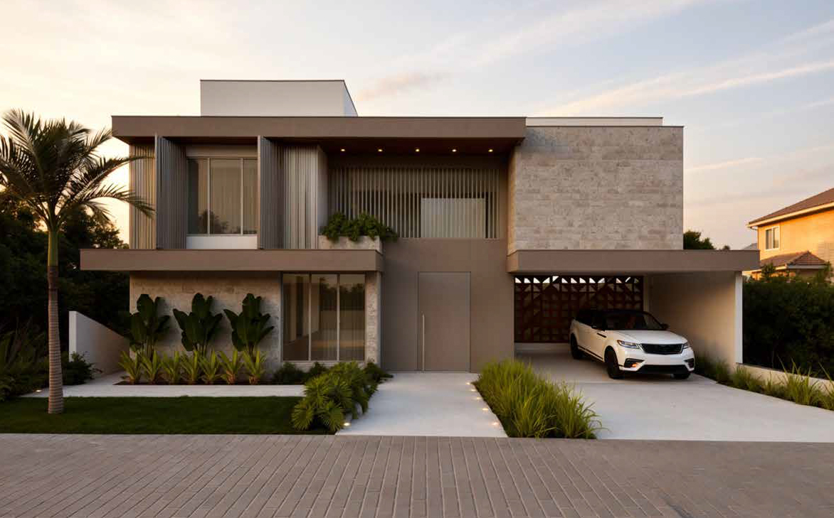 O projeto nasceu com o propósito de criar uma residência funcional, acolhedora e alinhada ao modo de viver de uma família contemporânea. A fachada reúne volumes marcantes, texturas naturais e aberturas que valorizam a iluminação natural e reforçam a elegância. Os ambientes sociais foram planejados para garantir praticidade no dia a dia e integração com a área de lazer. Já no pavimento superior, as suítes oferecem conforto e privacidade. Cada detalhe foi pensado para unir beleza e praticidade, resultando em uma casa confortável e harmoniosa para criar memórias com as pessoas que você ama.
